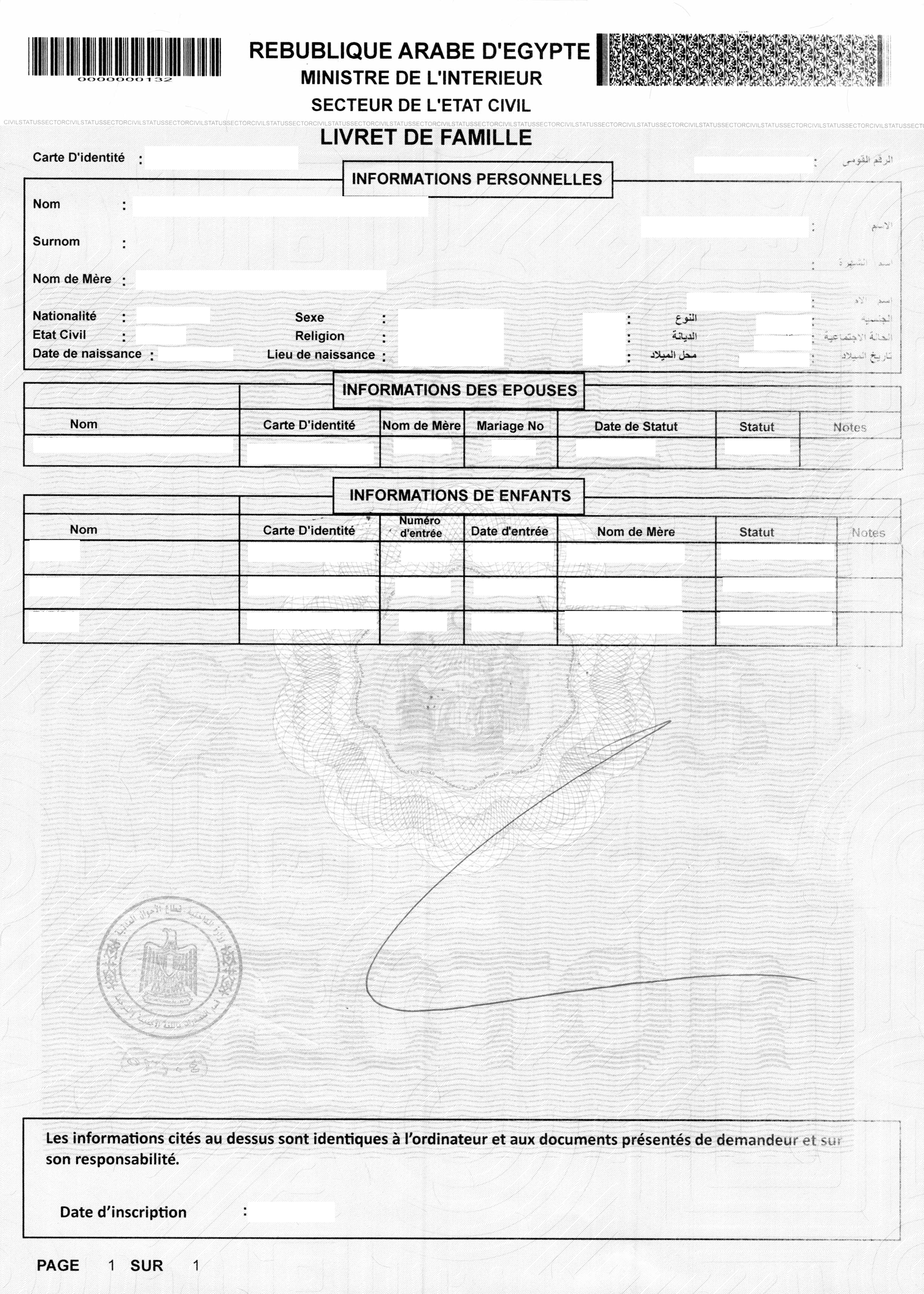 - Bilingual family registry (CSO) – Arabic/French