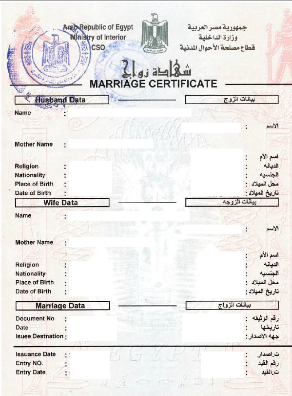 - Bilingual marriage certificate (CSO) – Arabic/English